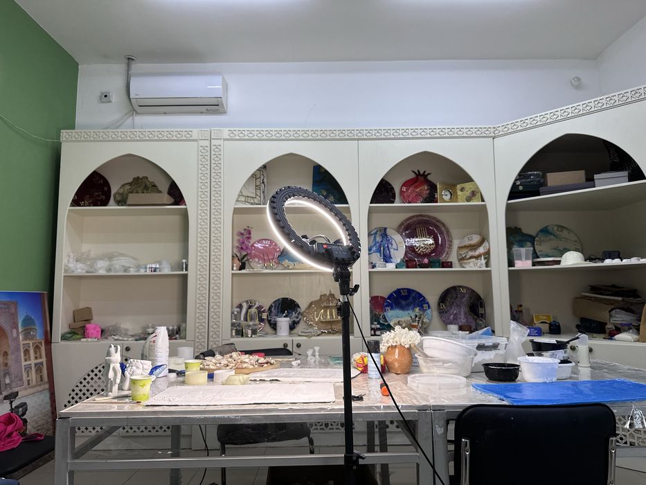 Все удобства уютное арт пространство 1 час 150 тыс сум Можите проводить мастер классы до 10 человек Горячая вода,свет ,все удобства есть