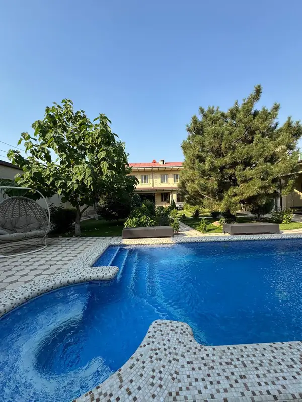 Продается капитальный Дом. Мирзо Улугбекский район, элитная махалля Амира Тимура Площадь участка 9.2 соток Участок ровный, угловой, широкая подъездная улица Общая жилая площадь - 500 м.кв 8 комнат 4 спальни 3 сан. узла Подвал Летняя кухня, барбекю Летняя терраса с раздвижными стеклянными дверями Летний бассейн (4х8) с фильтрами и подсветкой Система отопления: Италия Автоматическая система полива Видеонаблюдение – 8 камер Дизельный генератор HYUNDAI Гараж на 4 авто с автоматическими воротами Двор с ландшафтным дизайном, голубыми елями и фруктовыми деревьями. Цена 880 000 у.е. торг Реальным покупателям. Идеальный вариант под реконструкцию, а также строительство: конструкция строения, фундамента позволяют возвести еще +1 (один) этаж, а также территория позволяет построить еще 2 (два) дома. тел +998 90 935 84 48